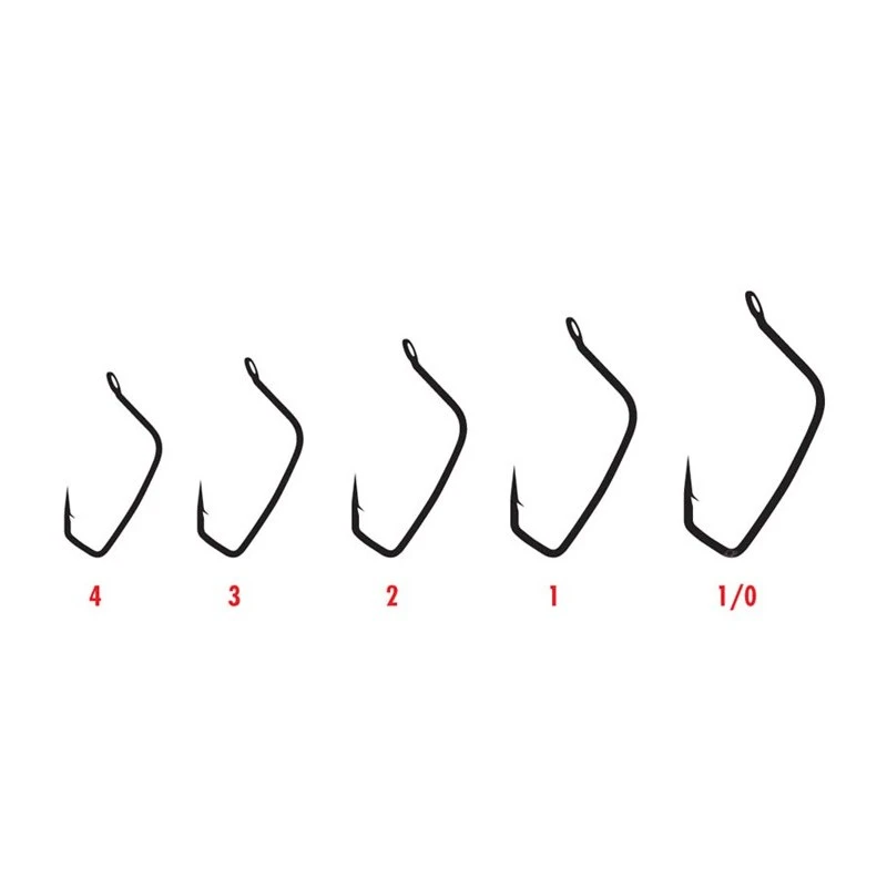 Hameçon drop shot forgé renversé, sa forme très spéciale lui permet une présentation du leurre plus en retrait du nylon et son long plat permet d’enfiler un leurre qui aura une position parfaite dans l’axe.
