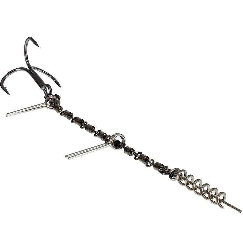 Durant le combat, les articulations permettent une rotation libre à 360°, ce qui permet de réduire sensiblement les décrochés. L’utilisation d’émerillons au lieu d’un fil armé augmente le poids du montage, ce qui aide à stabiliser vos leurres pour leur donner une action de nage parfaite.